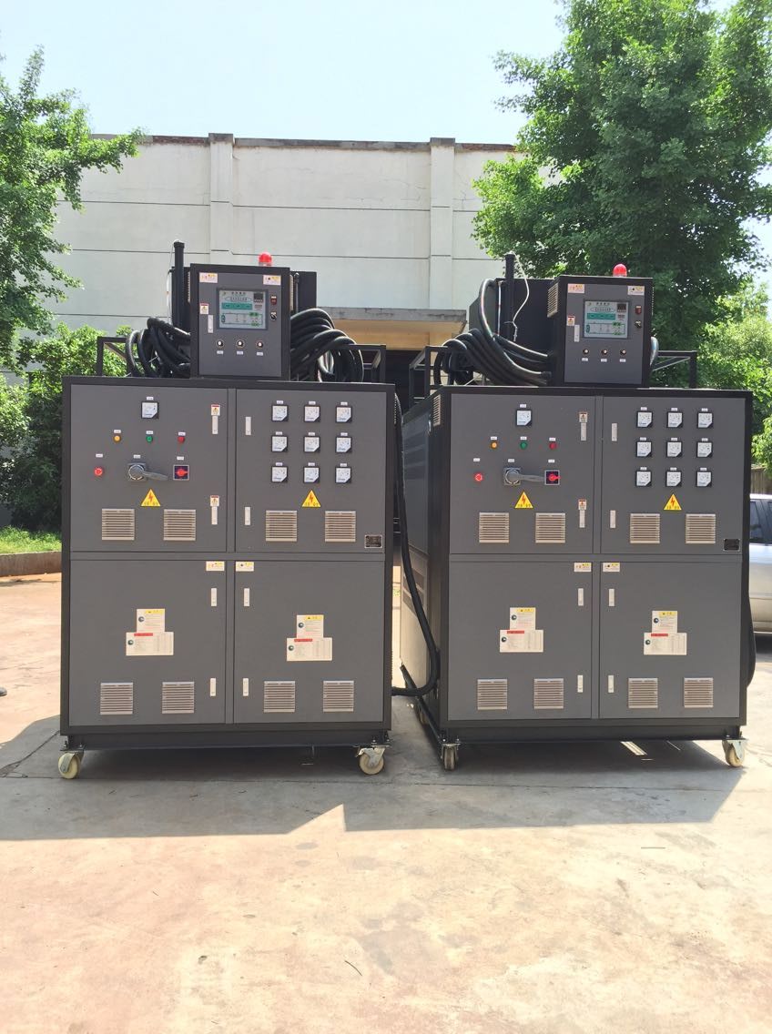 高溫油溫機(jī)就是以導(dǎo)熱油為傳熱媒介的模溫機(jī)。油溫機(jī)自身設(shè)有一個(gè)儲(chǔ)油箱,工作時(shí)導(dǎo)熱油由儲(chǔ)油箱進(jìn)入系統(tǒng),導(dǎo)熱油通過(guò)加熱器升溫,然后經(jīng)循環(huán)泵打入到模具或其它需要控溫的設(shè)備,導(dǎo)熱油從控溫設(shè)備出來(lái)后,再返回到系統(tǒng),周而復(fù)始。